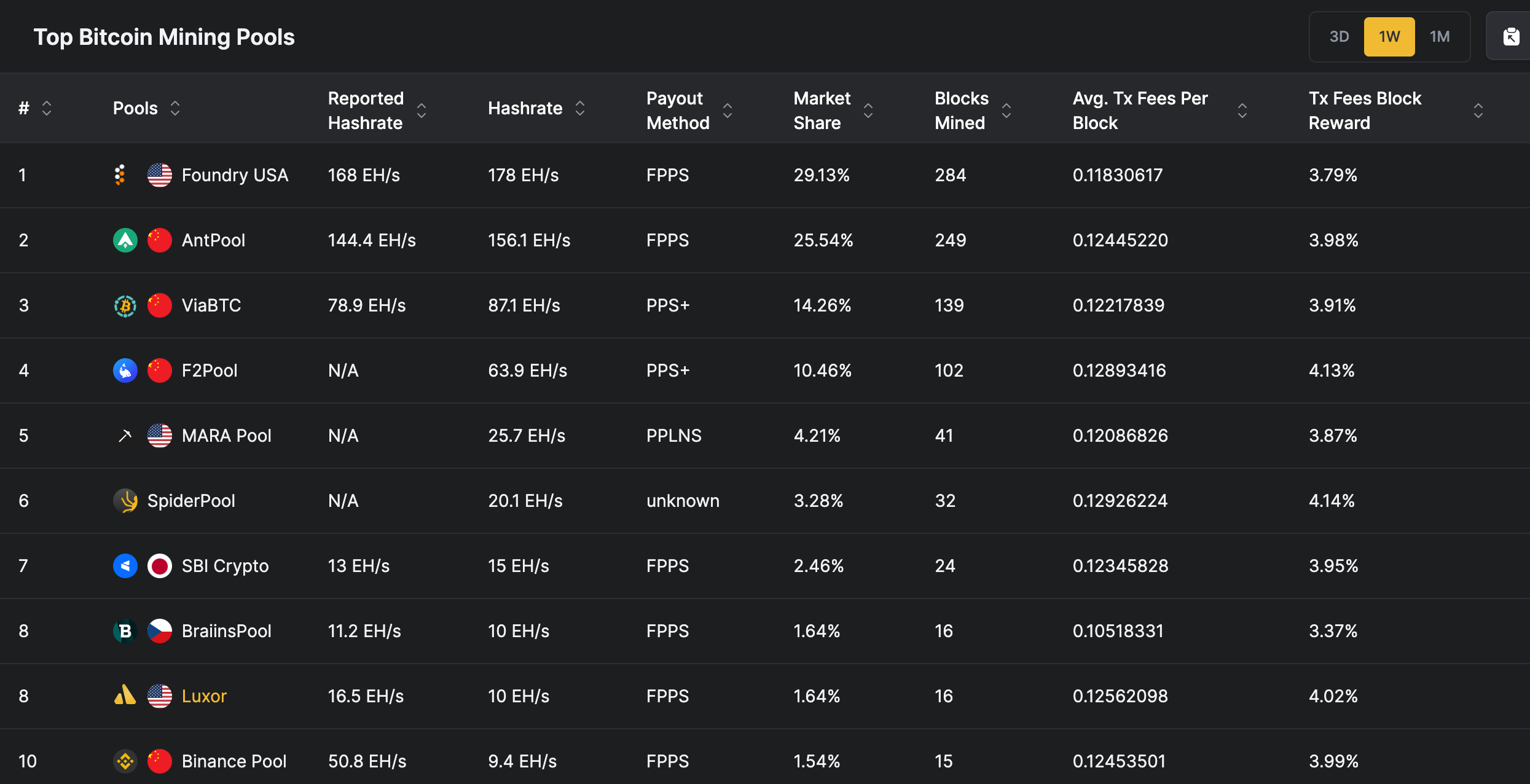 These are the most prominent mining pools responsible for the ~ 575 EH/s network hashrate.