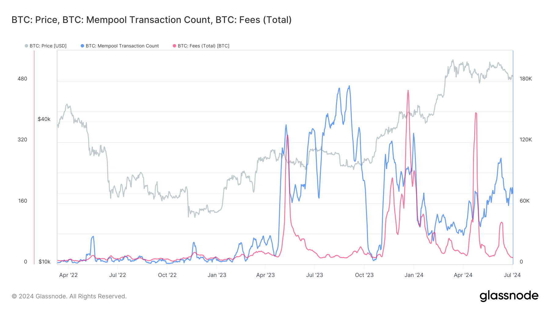On-chain fees and transactions sitting in the mempool are indeed reduced, but nothing we haven’t seen before: